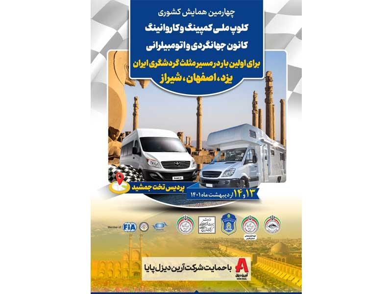 چهارمین همایش ملی کمپینگ و کاروانینگ کانون جهانگردی و اتومبیلرانی در مسیر مثلث گردشگری ایران ، یزد ، اصفهان و شیراز در پردیس تخت جمشید شیراز برگزار می شود.
