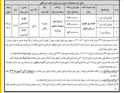 پیشثبتنام دو خودروی فیدلیتی الیت و ریسپکت تیپ 2 با قیمت غیرقطعی در دو طرح عادی و حمایت از خانواده و جوانی جمعیت از ساعت 11 صبح روز چهارشنبه 3 بهمن آغاز و تا ساعت 24 روز جمعه 5 بهمن ماه ادامه خواهد داشت.
