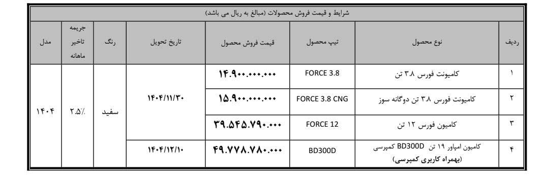 کامیون فورس 12 تن با قیمت حدود سه میلیارد 954 میلیون تومان با تحویل پایان بهمن 1404