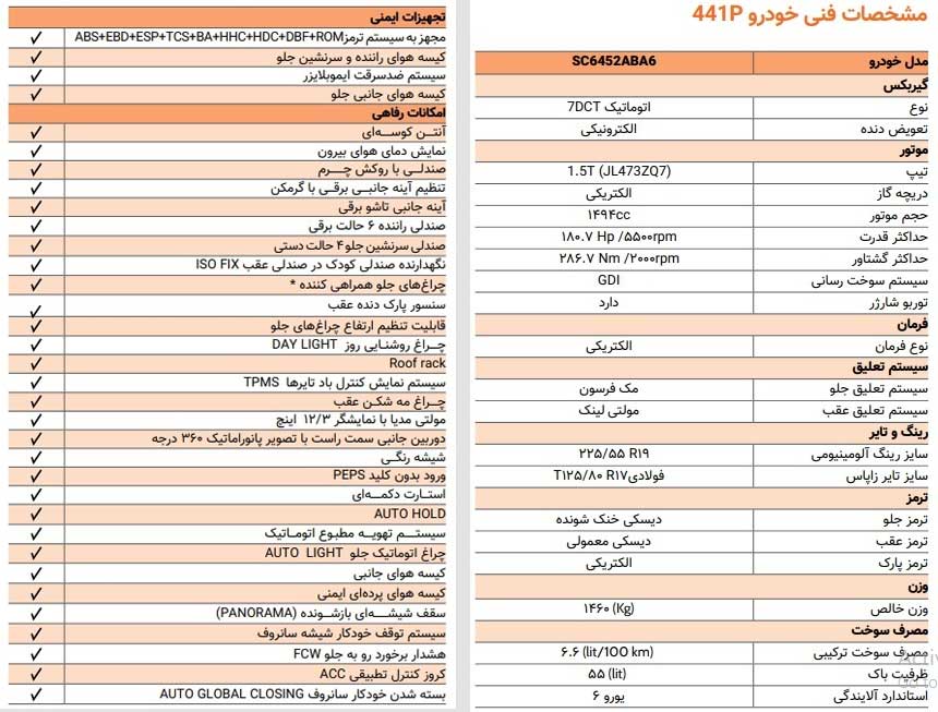 بر اساس اعلام شرکت سایپا این خودرو به پیشرانه ۱٫۵ لیتری توربوشارژ مجهز بوده و توان خروجی آن در حدود ۱۸۰.۷ اسب بخار و گشتاور ۲۸۶.۷ نیوتنمتر است. همچنین در بخش ایمنی و امکانات رفاهی، دارای تجهیزاتی نظیر سیستم ترمز ABS، کنترل پایداری ESP، کیسههای هوای جلو، جانبی و پردهای، سنسور پارک عقب، کروز کنترل تطبیقی (ACC)، سیستم ورود بدون کلید، دوربین ۳۶۰ درجه، نمایشگر لمسی بزرگ و سقف شیشهای پانوراما است.