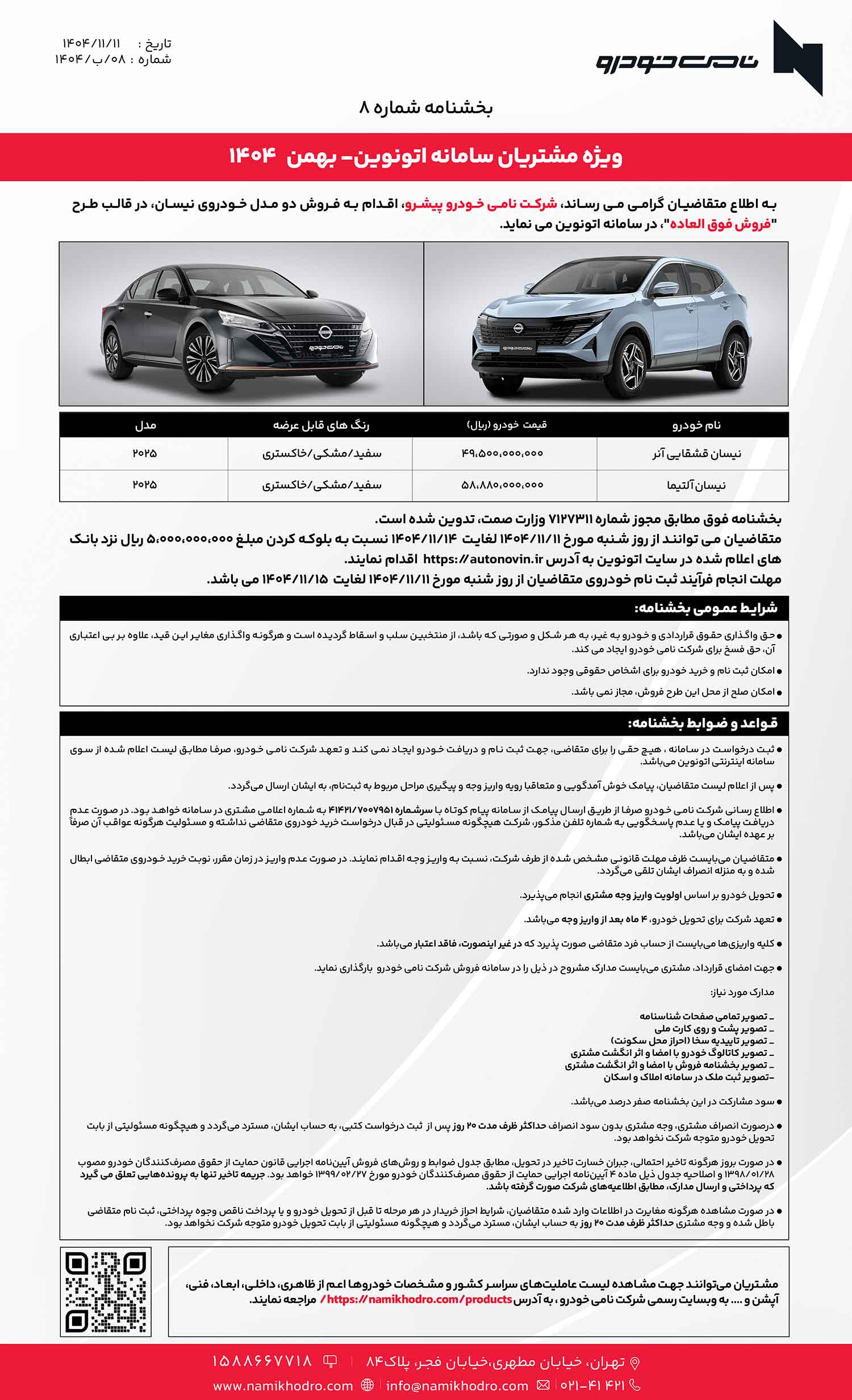 شرکت نامی خودرو، عرضه کننده محصولات نیسان در ایران، شرایط عرضه نیسان آلتیما را اعلام کرد.