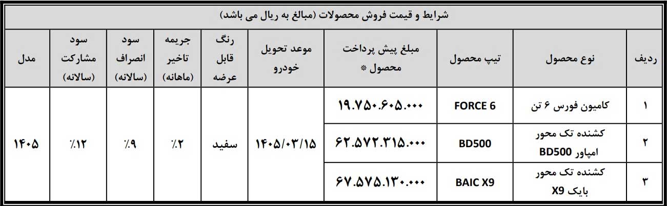 پیش فروش عادی 3 محصول بهمن دیزل با قیمت غیرقطعی